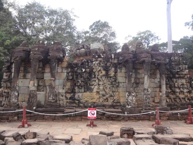 ライ王のテラスは壁が2重のようになっており、一面にぎっしり詰まった彫刻が圧巻です。外側は不鮮明になってきていますが、内側にはキレイなレリーフがたくさん残っています。
