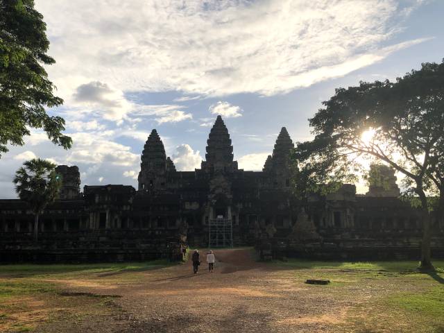 アンコールワットの敷地はとても広いので正面広場にある西参道から見る夕日もとても素敵です。