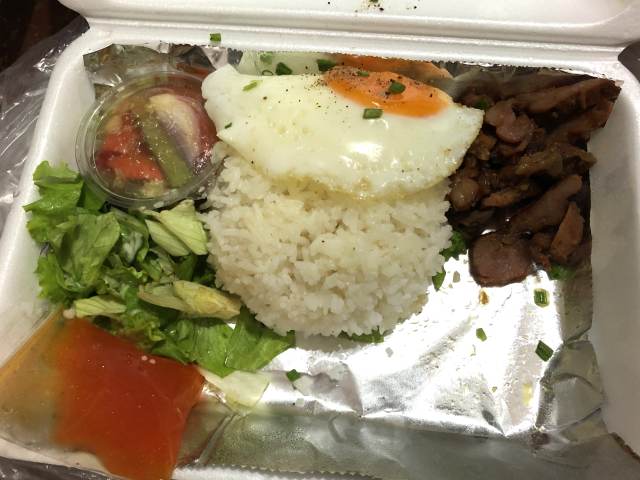 なので日本語に直訳すると「豚肉ごはん」ですね。英語だと「Pork with rice」なんて書かれます。